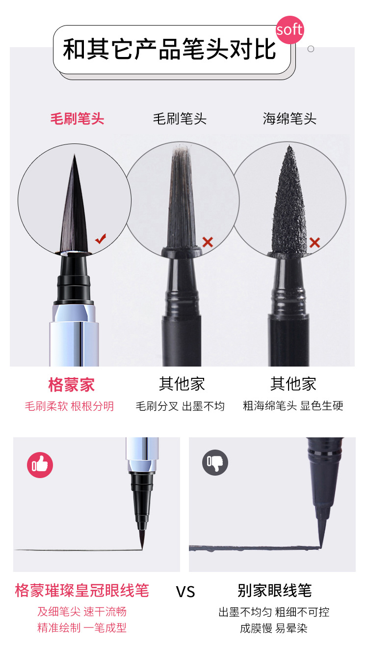 格蒙彩色眼线笔防水不晕染毛刷细头学生款轻奢金属质感眼线液笔