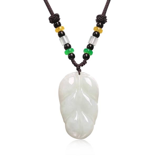 玖钻天然玉石玉叶项链 P11279