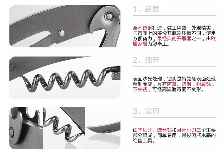 2把 红酒开瓶器 不锈钢海马刀红酒开瓶器 酒具酒刀 多用途开瓶器