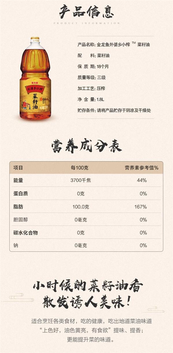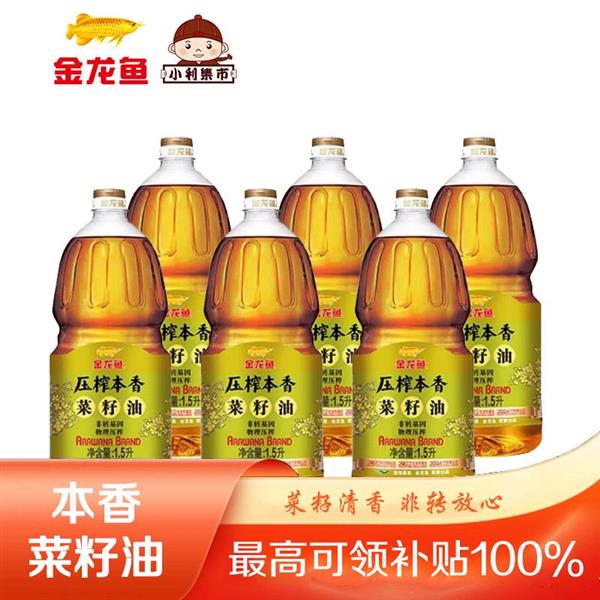 【6瓶】金龙鱼压榨本香菜籽油 1.5L 非转压榨