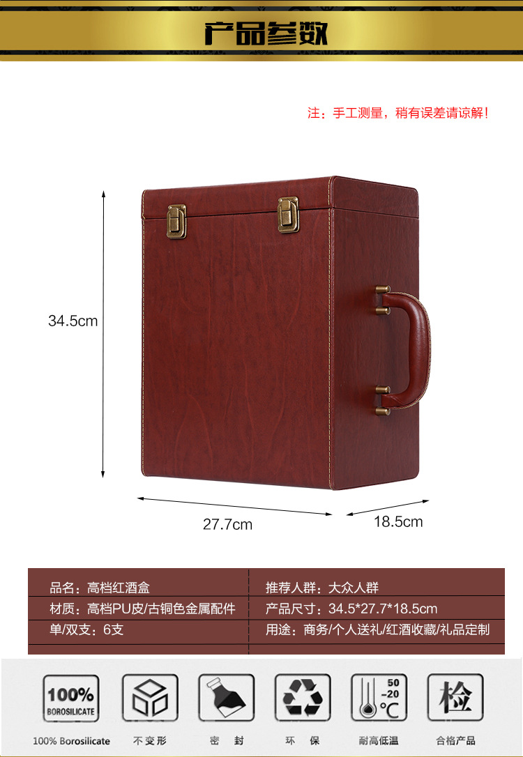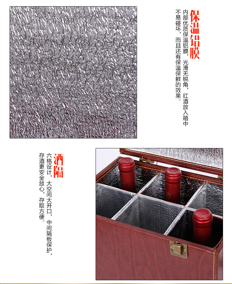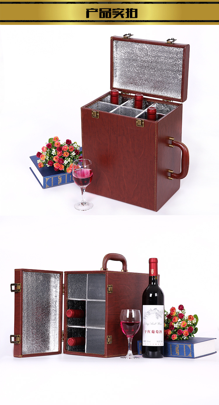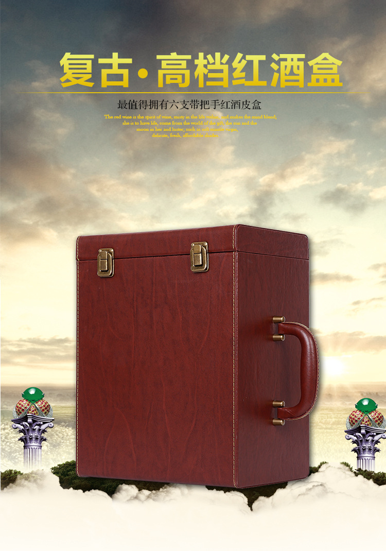 红酒盒 六支装皮盒包装盒现货 红酒礼盒包装 六支装红酒包装盒