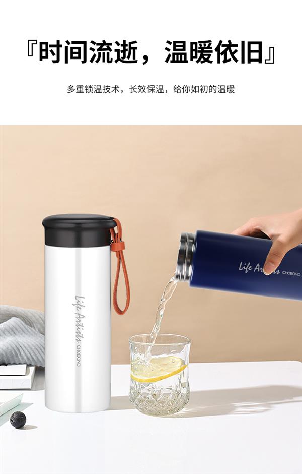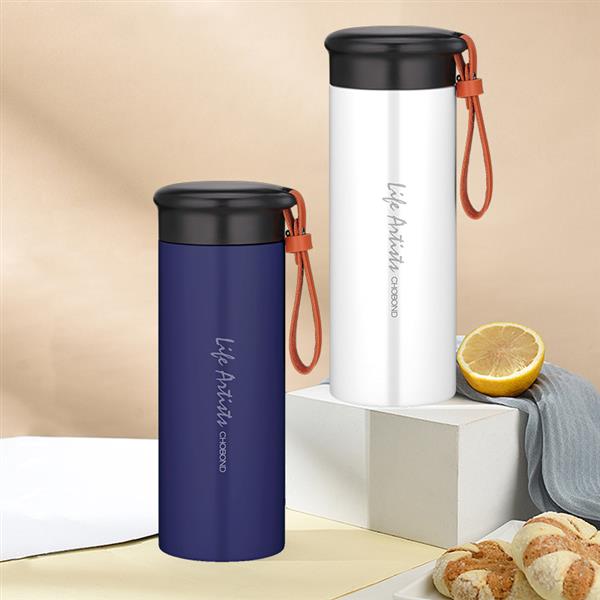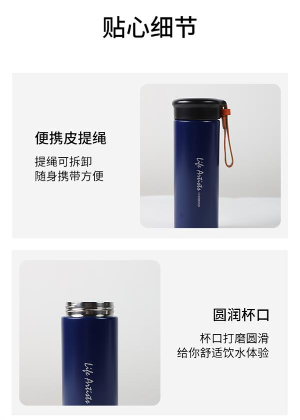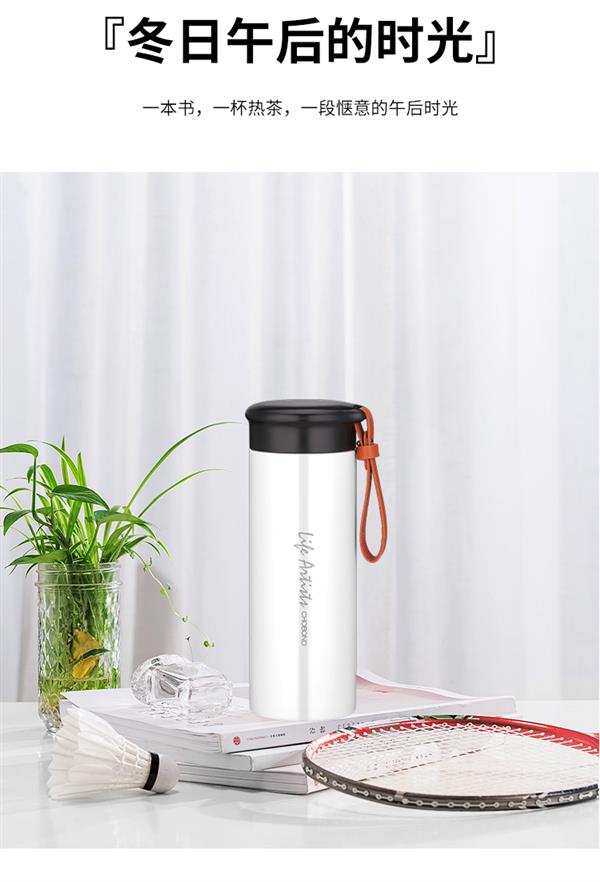 安茂双层304不锈钢保温杯办公带手柄过滤网泡茶杯子
